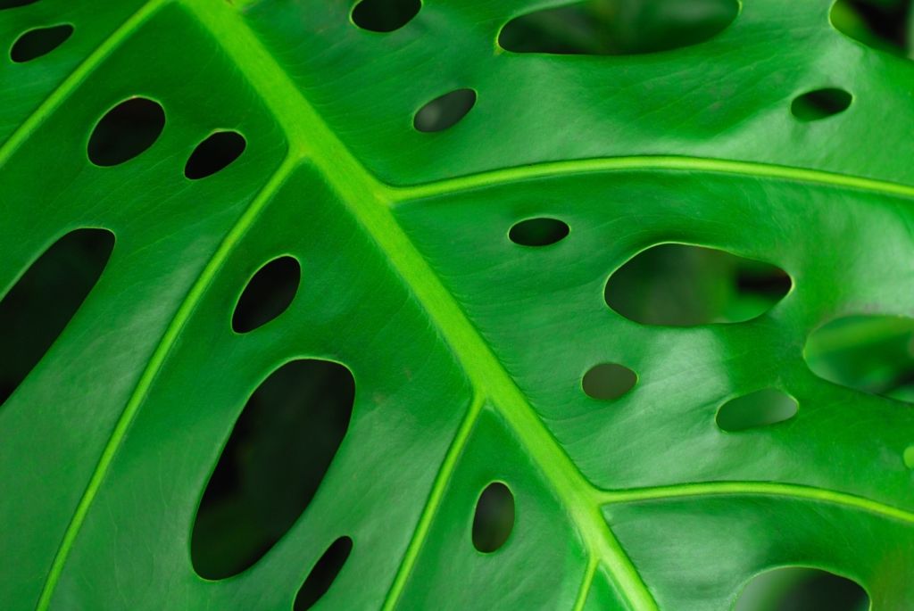 In the wilds of the jungle, Monsteras can grow to be enormous: dozens of meters tall with sometimes odd-looking leaves that spread to nearly one meter wide. There have been many discussions and speculations on how and why Monsteras make those leaf holes. Some have assumed that they create holes to resist the strong winds of hurricanes, like the bird of paradise in the right picture. However, if the adaption was to rest hurricane winds, then all tropical plants would have similar adaptions. Others suggest that the holes allow the excessive rain to come in contact with the roots. On the other hand, Monsteras are native in tropical rain forests where it rains nearly every day. There is enough water to reach the roots. After all, one might say the “hole theories” have holes in them – there is no good explanation and little evidence.